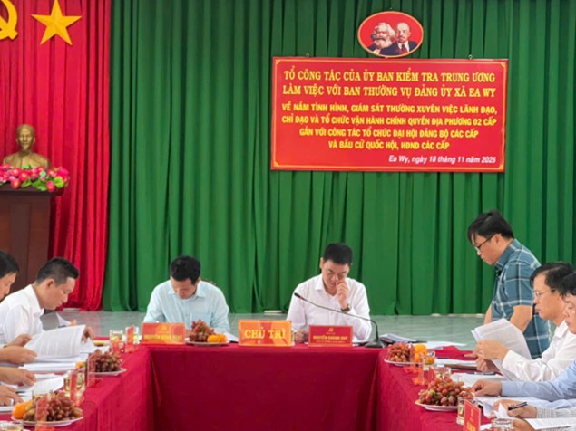 - TỔ CÔNG TÁC CỦA ỦY BAN KIỂM TRA TRUNG ƯƠNG LÀM VIỆC TẠI XÃ EA WY (giám sát thường xuyên theo Kế hoạch số 249-KH/UBKTTW ngày 24/7/2025 của Ủy ban Kiểm tra Trung ương) (18/11/2025)