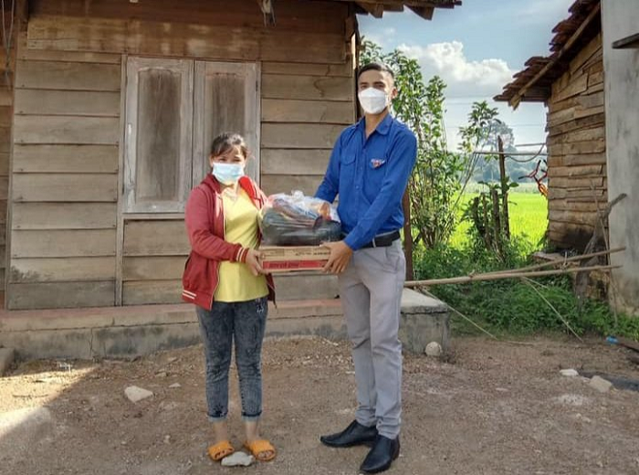 Ảnh: Đoàn thanh niên tặng quà cho các hộ gia đình khó khăn