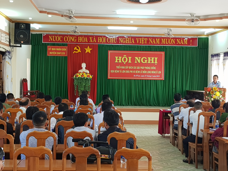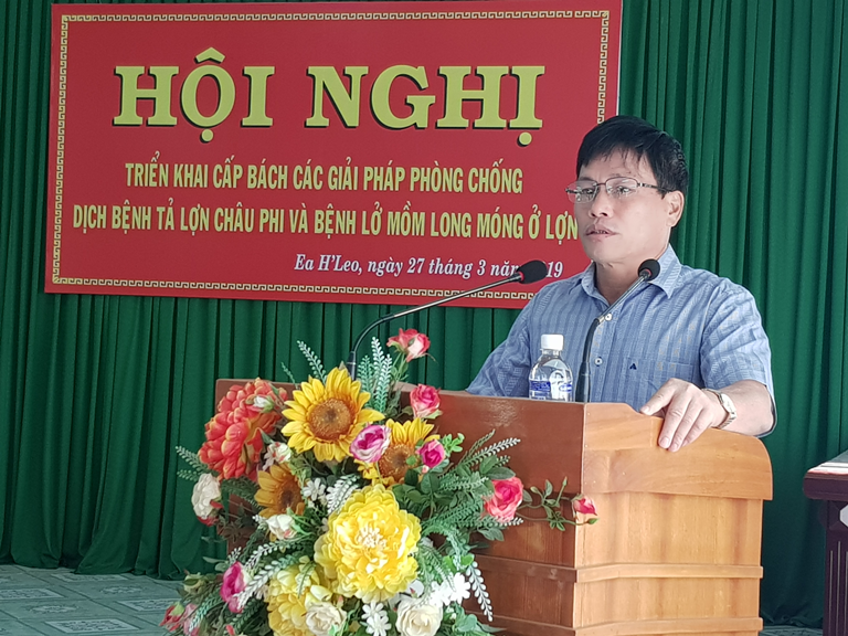 Ngày 27/3/2019, UBND huyện Ea H'Leo triển khai cấp bách các giải pháp chống dịch tả lợn Châu Phi và bệnh lở mồm long móng trên địa bàn huyện. Ông Phan Tiến Dũng – HUV, Phó Chủ tịch UBND huyện chủ trì hội nghị.