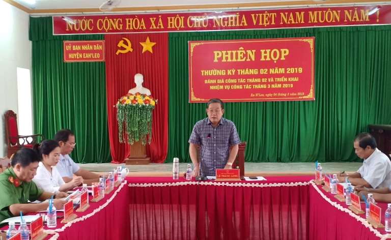 - Về hoạt động chỉ đạo, điều hành: UBND huyện đã chỉ đạo quyết liệt các biên pháp phòng, chống dịch bệnh sau Tết Nguyên đán; tăng cường các biện pháp phòng cháy, chữa cháy rừng năm 2019 trên địa bàn huyện; phân khai chi tiết kế hoạch đầu tư xây dựng nguồn vốn ngân sách địa phương năm 2019; rà soát, xử lý những vướng mắc trong công tác giải phóng mặt bằng tại các dự án: Xây dựng nguyên đơn Cầu 110, tuyến đường tránh trung tâm thị trấn Ea Drăng, Hồ chứa nước Ea H'Leo 1; tăng cường trao đổi văn bản điện tử trên Hệ thống iDesk…